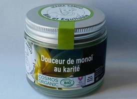 - Huile végétale de monoï de Tahiti (AOP), huiles végétales bio de coco, de jojoba, de carthame.